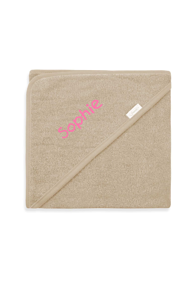 Gepersonaliseerde beige badcape met geborduurde naam